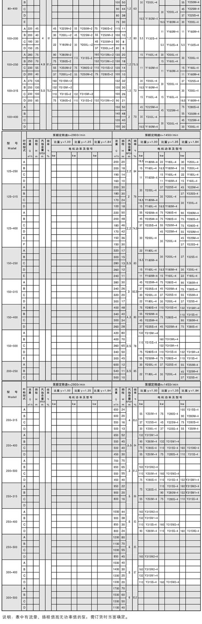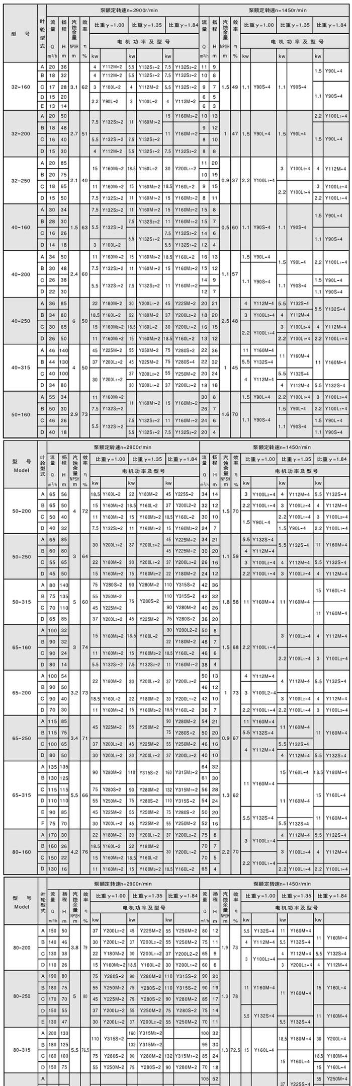 六、CZ型化工泵性能参数表