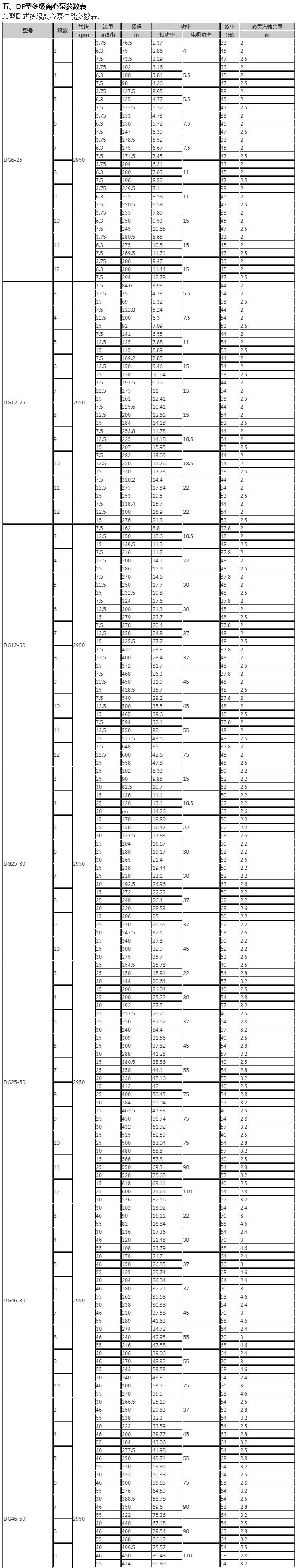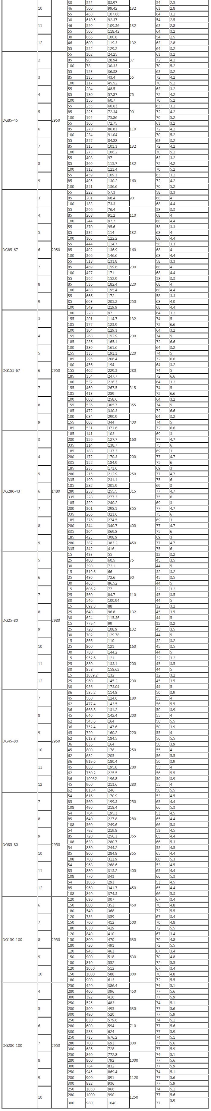 2. DG型供输送清水或物理及化学性质类似于清水的其它液体之用。介质温度不大于200℃,适用于小型锅炉给水或输送热水和类似热水的介质。